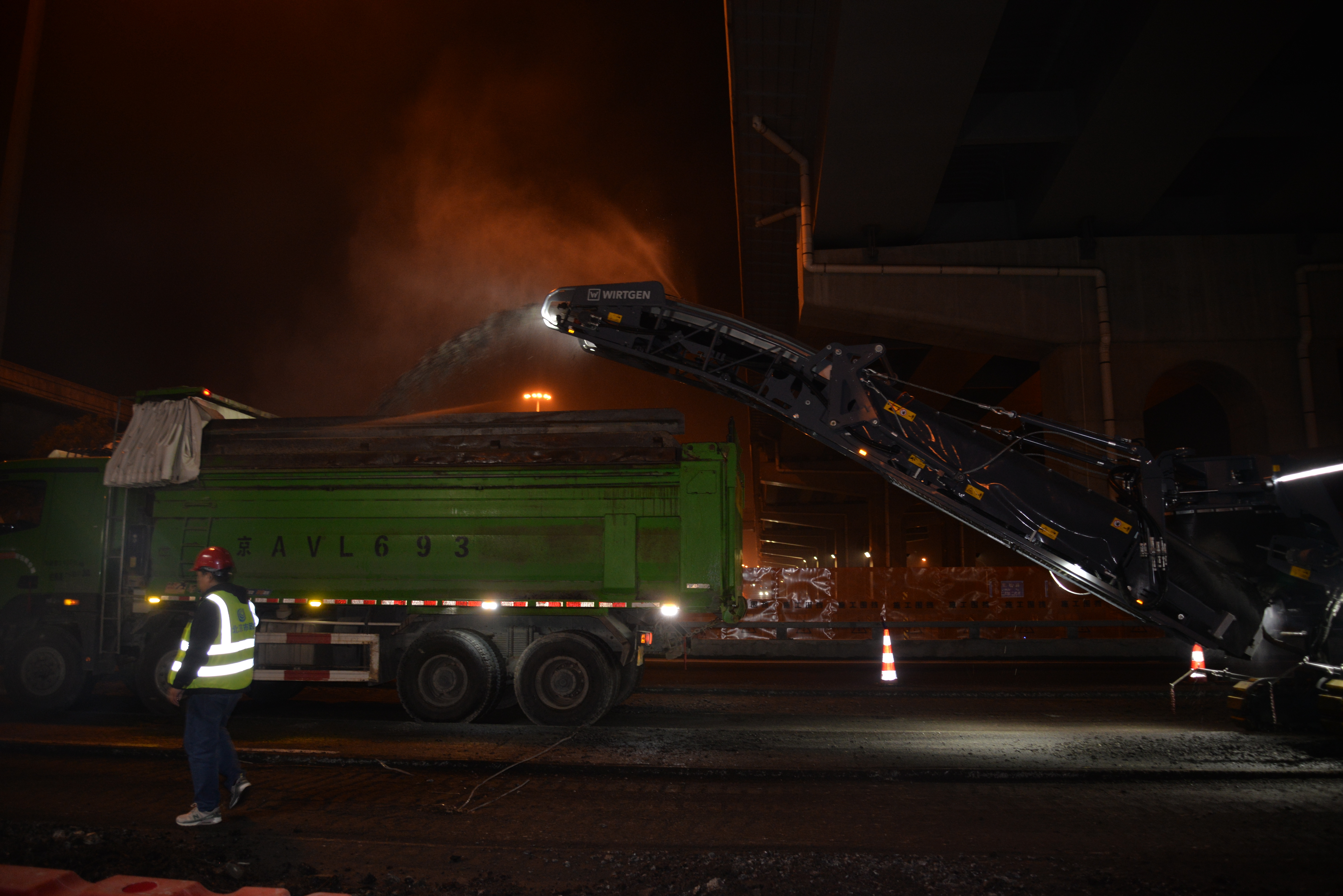 与此同时,“北京修路名场面”再次出现:浩浩荡荡的机械车辆队伍从四面八方集结,听从指挥,有序驶入各个施工作业面,滚动推进各项工序。一时间,机械轰鸣,铣刨机先行啃食旧路面,喷淋设施生成水雾降尘。