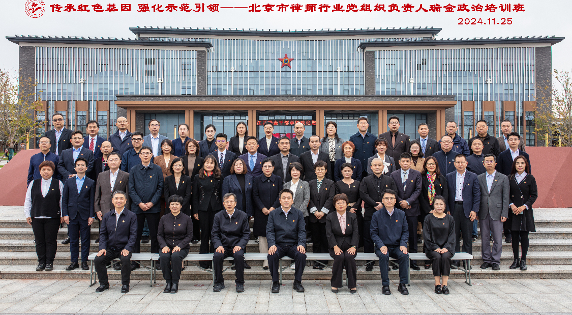 (记者 贾增远)2024年11月24日至11月29日,为进一步推进律师队伍爱国主义教育走深走实,市律师行业党委在瑞金干部学院举办了律师行业党组织负责人政治培训班,市律师行业党委、市局党建工作处、律师工作处、市律协党建委部分委员,市律师行业部分党组织负责人,共计57人参加培训。