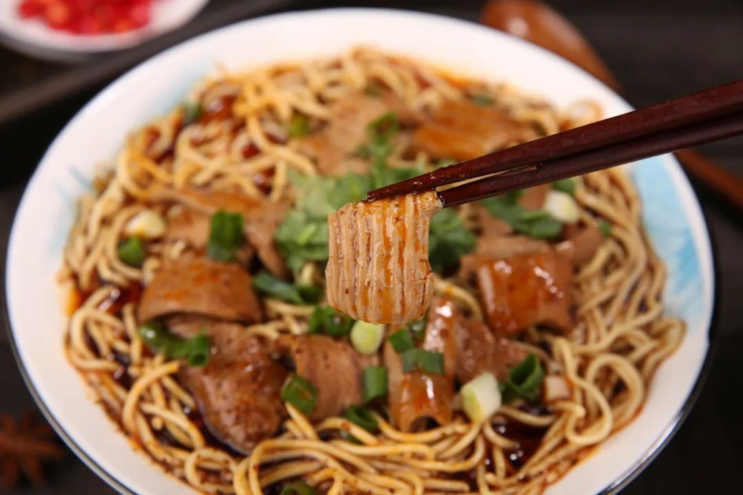 精心腌制和卤制后,牛肉面除了大料的香味之外,还融合了底汤的清香味和牛肉的五香味,清香扑鼻。与面条搭配吃起来不辣不燥,特别适口。