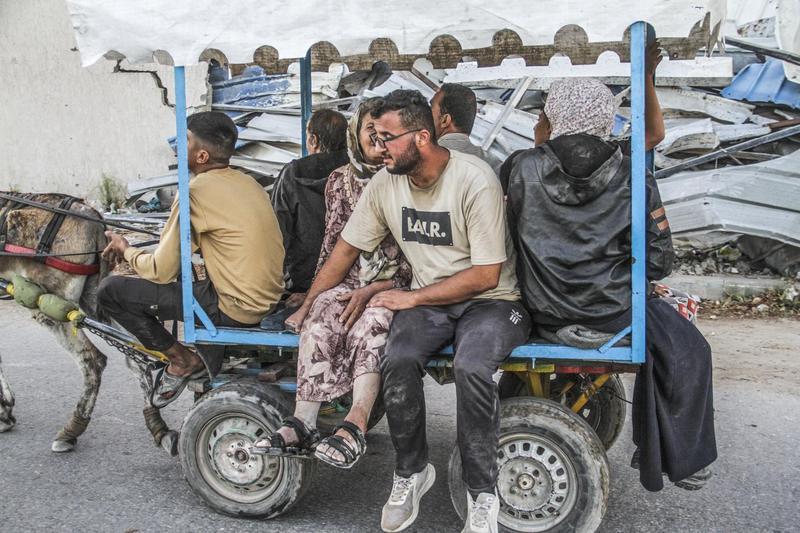 这是10月19日在加沙地带拍摄的逃离加沙地带北部杰巴利耶难民营的民众。新华社发(马哈茂德·扎基摄)