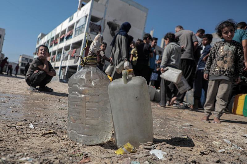 10月20日,人们在加沙地带南部城市汗尤尼斯取水。联合国机构17日发布的最新报告显示,整个加沙地带面临饥荒风险,约86%人口处于“极度严重”饥饿状态,缺乏干净水源和卫生设施。新华社发(里泽克·阿卜杜勒贾瓦德摄)