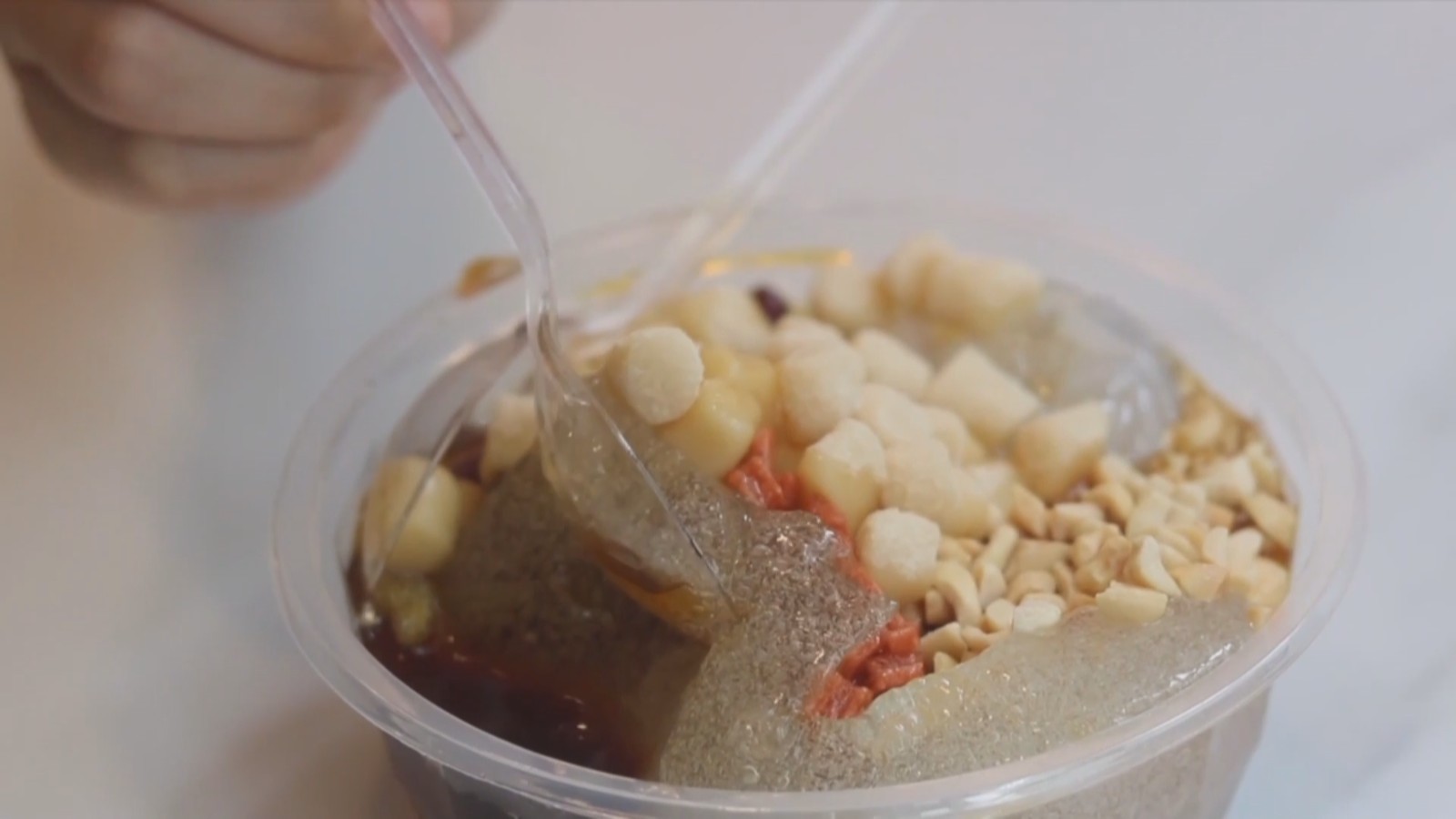 红糖、糍粑;山楂、芋圆;玫瑰、柠檬……冰粉被商家玩得花样迭出,深受市民喜爱。