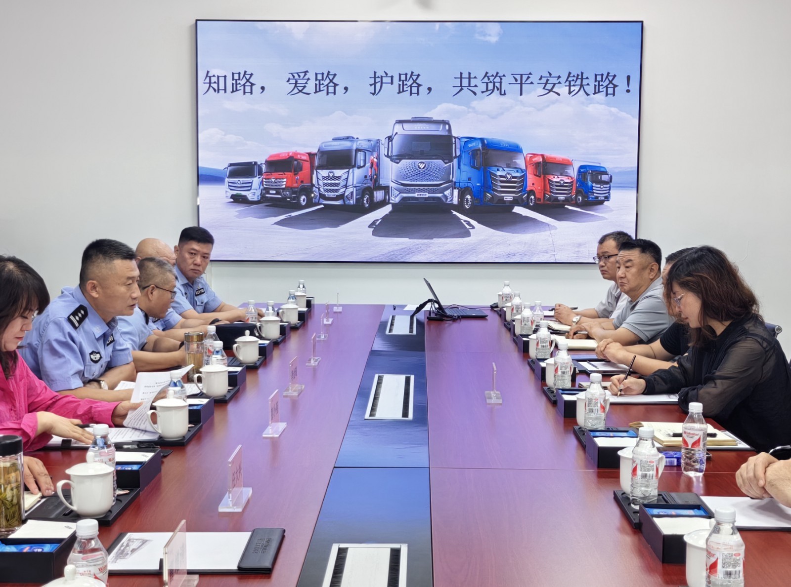 据密云站派出所所长李金瑞介绍,7月23日,密云站派出所联合北京市怀柔区政法委平安铁路办公室,中国铁路北京局集团有限公司北京工务段综治内保科、顺义线路车间和护路巡防大队等单位,前往铁路沿线的北京福田戴姆勒汽车有限公司制造二厂,为企业员工开展“知路、爱路、护路,共筑平安铁路”铁路安全专题培训。培训中,他结合近期管内发生的典型案例,详细讲解了《铁路法》、《治安管理处罚法》等相关法律法规,并宣传普及了铁路安全常识,提高企业员工安全防范意识。北京市怀柔区政法委平安铁路办公室副主任彭小菊、中国铁路北京局集团有限公司北京工务段综治内保科科长任大兴,还分别从平安铁路创建、铁路安全等方面进行了讲解和宣传。培训中,彭小菊还指出,当前正值铁路暑运,路地联合深入铁路沿线普及铁路安全常识非常必要和及时,接下来平安铁路办公室还将联合密云站派出所、北京工务段继续深入走访京哈高铁和京承铁路沿线,为铁路沿线的企业员工、社区居民普及铁路安全常识,警民携手共同构筑铁路沿线联防联控安全屏障。