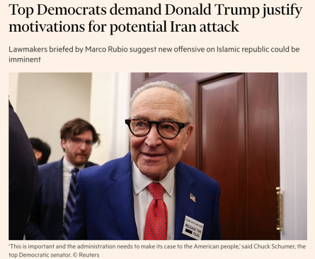 △《金融时报》报道,民主党高层在有关伊朗局势的简报会后表示,特朗普总统必须紧急向公众解释为何对伊朗开战