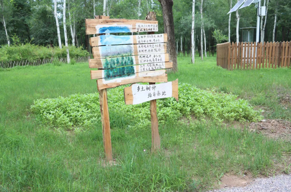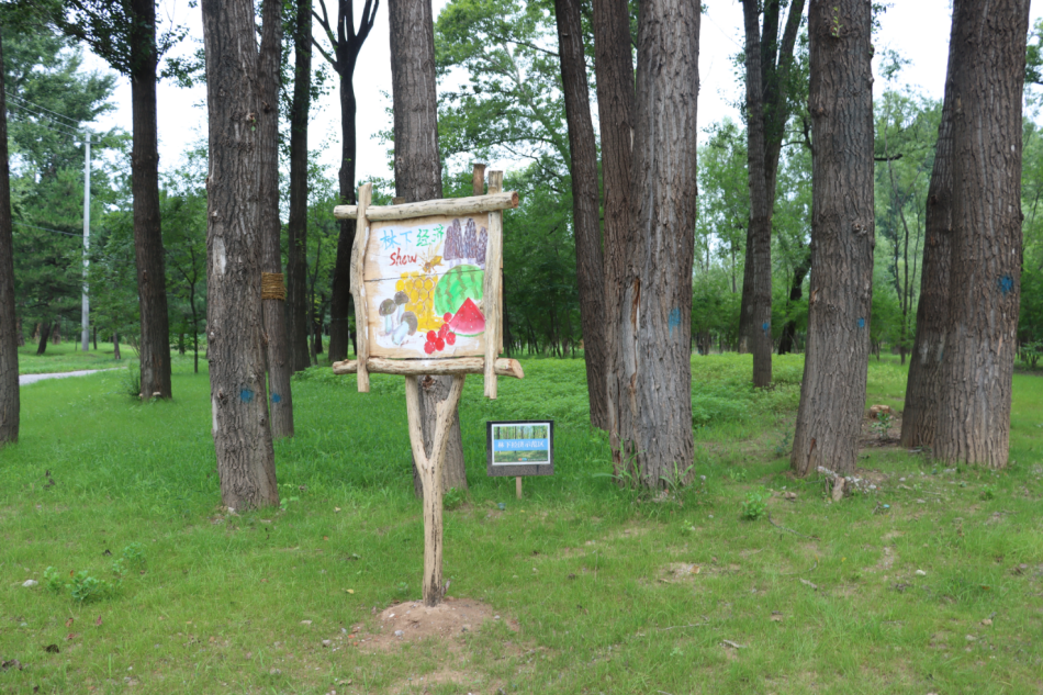 值得一提的是,在建设过程中,实践区内所有设施均使用抚育物建设。休憩桌椅、标识标牌、景观小品以及昆虫旅馆等设施是利用林木采伐剩余物由林场专业木工进行打造,同时,还利用修枝剩余物,制作天然更新幼苗围封、苗圃围栏,其他不能使用部分粉碎还于林下,在运用抚育措施增加林分固碳能力的同时,充分利用生产能耗最低、可再生的抚育剩余物,全过程发挥低碳示范的作用。