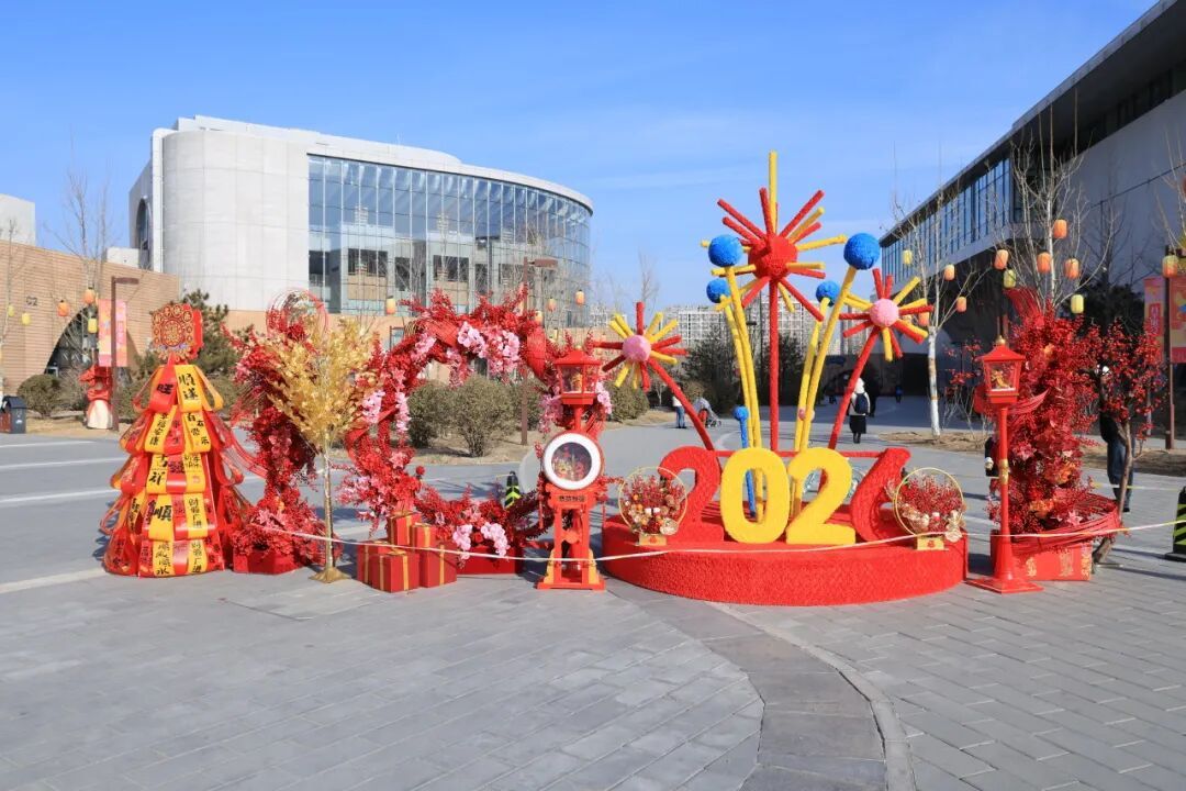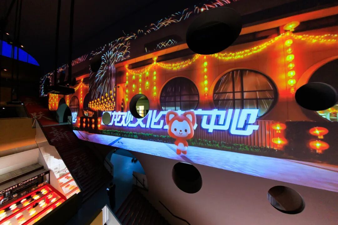 走进HUI观里,浓郁的新春气息扑面而来。记者看到,场馆中央矗立着一组朱红色的中式牌楼装置,飞檐翘角间尽显传统建筑之美,牌楼下方悬挂着串串色彩斑斓的灯笼,暖黄与橙红交织,让人感受到满满的年味儿。
