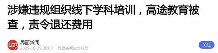 重资产模式带来了沉重的租金、人力和折旧成本,直接拖累了毛利率,使其从2023年的73.3%连降两年至67.4%。更严峻的是,线下业务的快速扩张引发了频繁的合规风险。2025年以来,高途多地子公司因违规开展学科培训、无证办学等问题被监管部门查处,这不仅带来了罚款和退费损失,更对品牌声誉造成了损害。