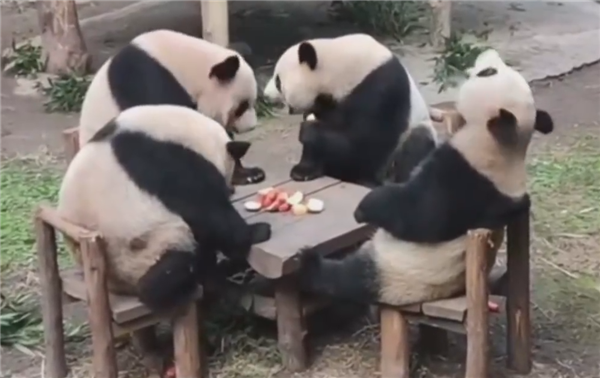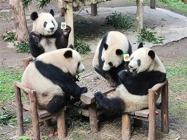 近日,重庆,四只大熊猫围坐一圈,仿佛下一秒要“打麻将”了……网友:大熊猫不仅听得懂四川话,还深得川渝人民的真传!果然是一方水土养一方熊猫!