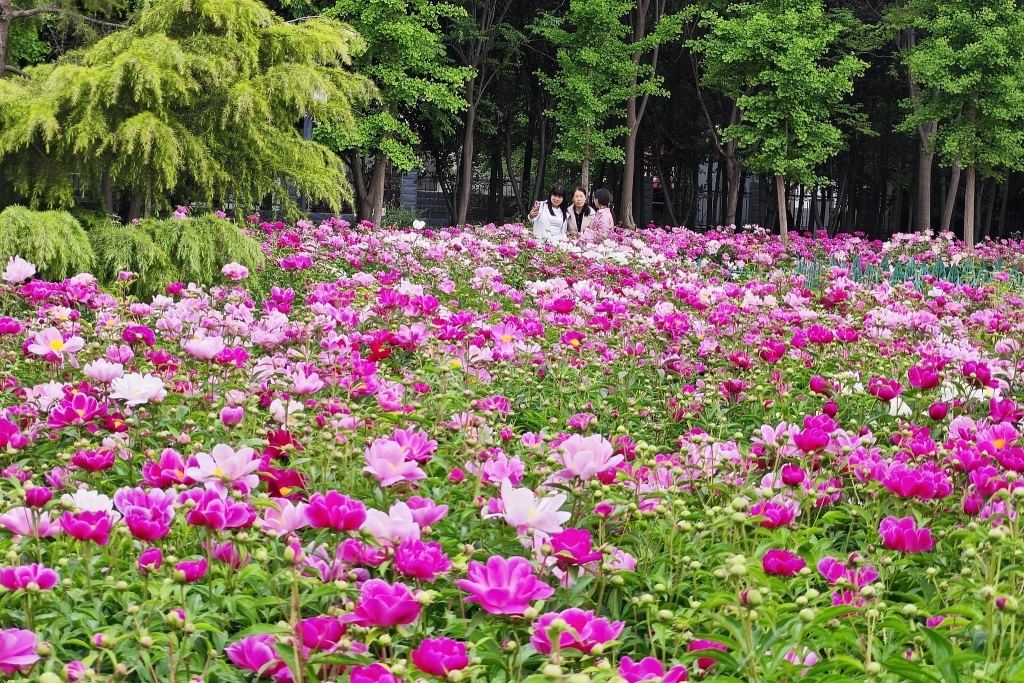 2025年4月27日,河北省邯郸市鸡泽县诗经文化园,芍药花竞相绽放,吸引了众多游客前来赏花。