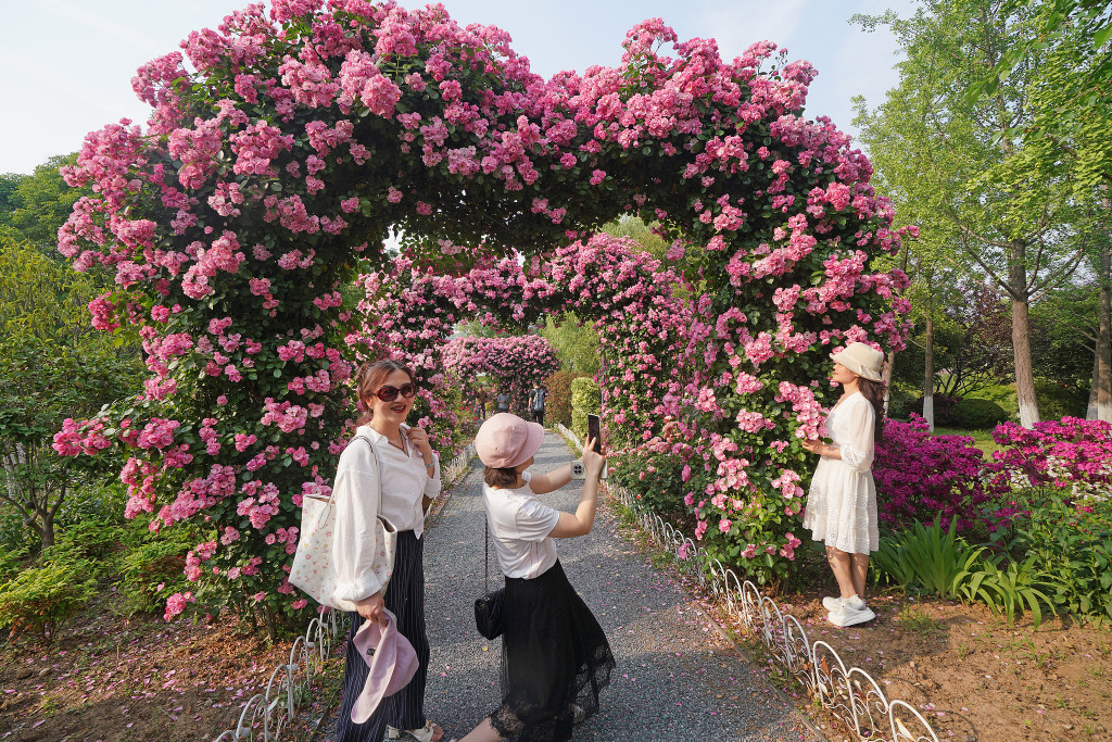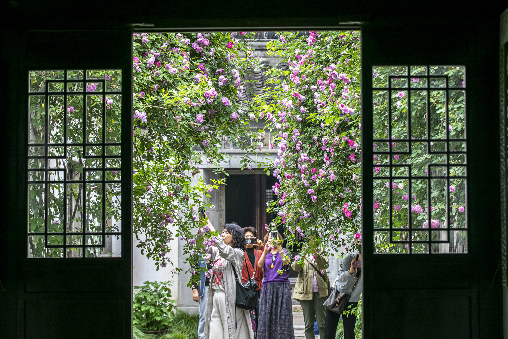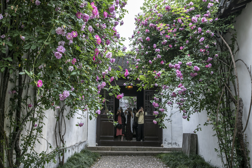 2025年4月22日,苏州园林艺圃蔷薇绽放。
