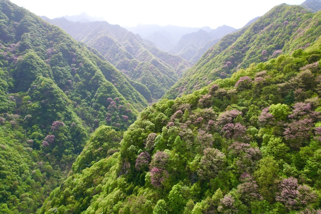 2025年4月16日,陕西西安,秦岭北麓山花绽放。