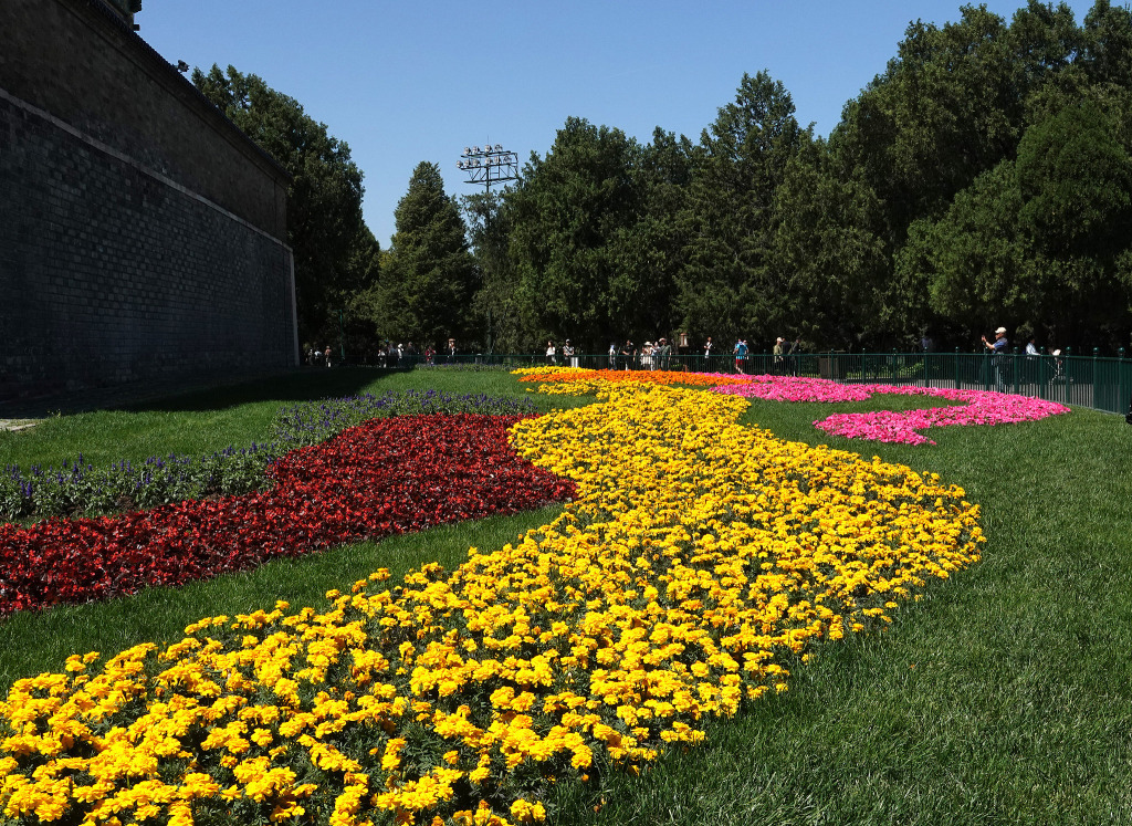 2025年4月28日,北京,天坛公园被各色花卉装扮一新。