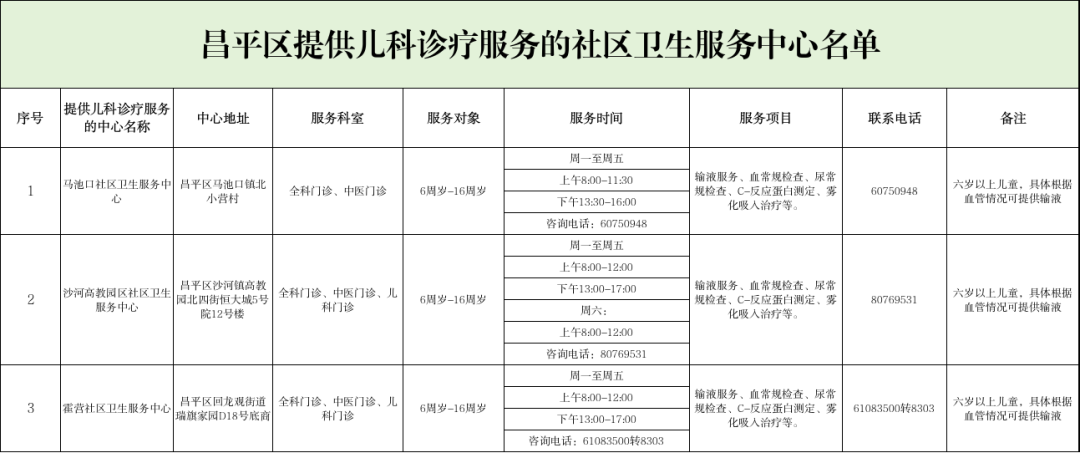 家长速看!昌平23家社区卫生服务中心提供儿科诊疗服务→