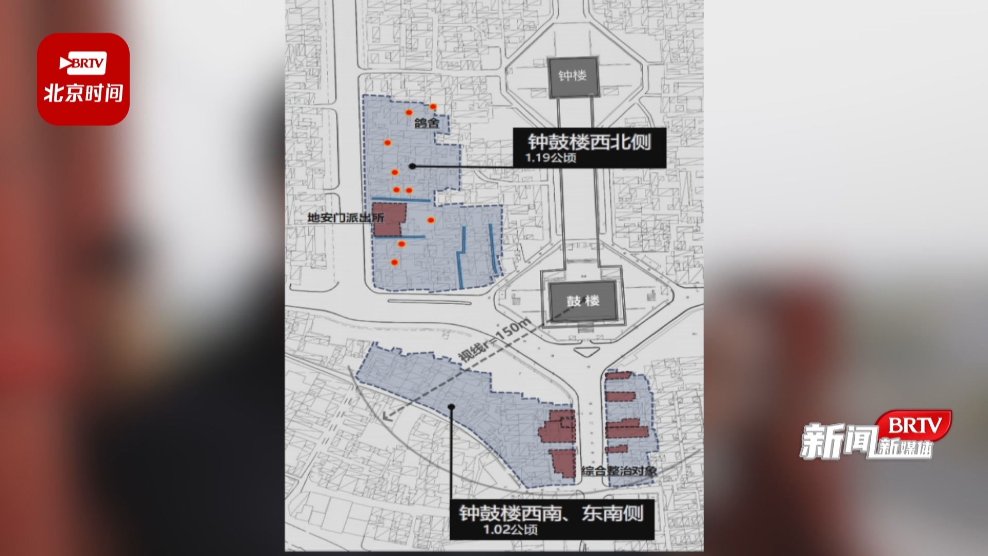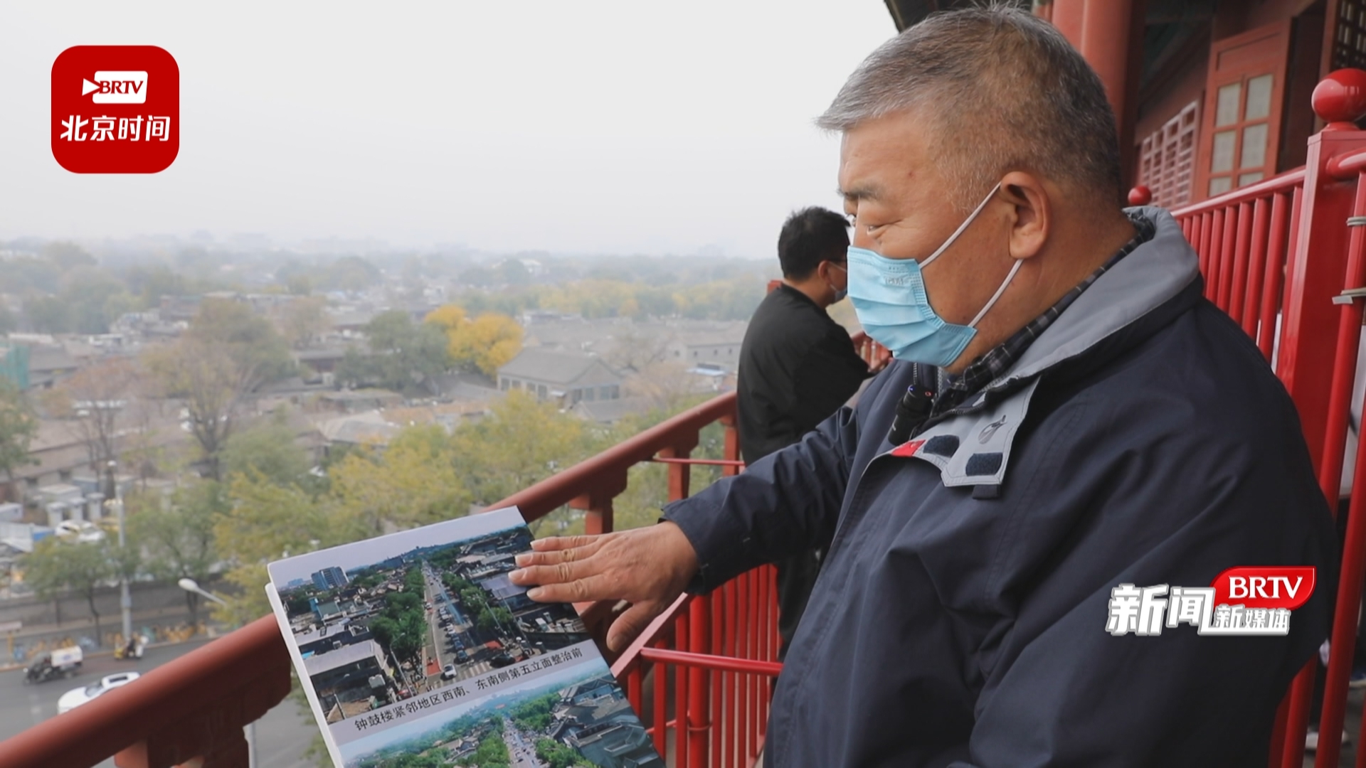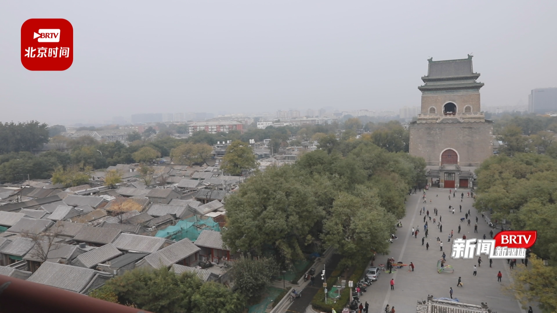 什刹海阜景街建设指挥部常务副总指挥 刘维岩:“这个是咱们钟鼓楼2021年4月原始的照片,整理好了以后,我们现在成了下面这个样子,中轴线周边的秩序基本上达到了左右对称。”