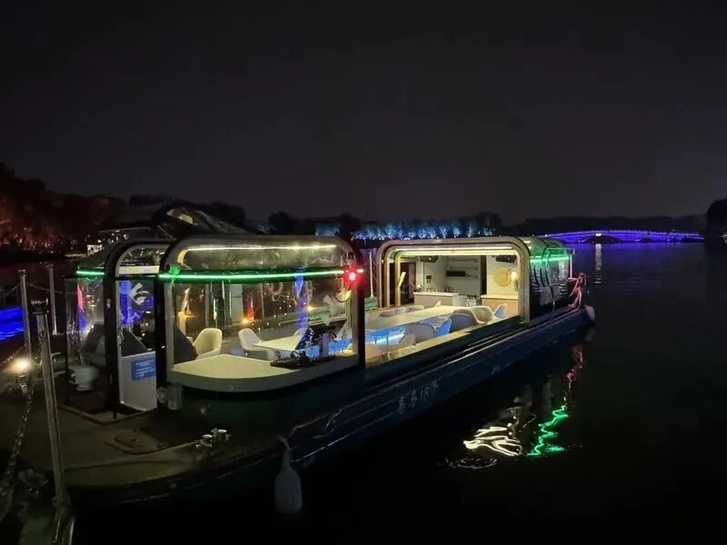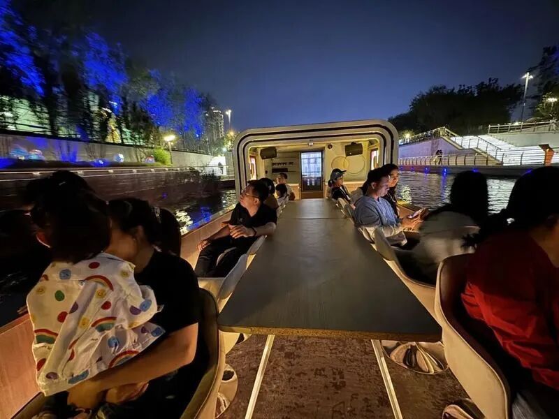 亮马河国际风情水岸游船游客主管程佳丽介绍,国庆假期期间,亮马河游船专门推出了水上音乐伴游、国庆8天乐·寻找国庆特别活动,还有日航双人同行赠文创雪糕等优惠活动。在国庆节后,随着本届灯光消费季核心光影艺术装置惊喜亮相,亮马河游船还将于10月11日起,全面推出追光线、寻光线两条特色游线,新增1个临时停靠点,正式开放碧沙码头,在灯光消费季期间串联起特色点位,方便大家从“水上”视角直观、全方位地欣赏两岸被璀璨灯光点亮的迷人夜景。