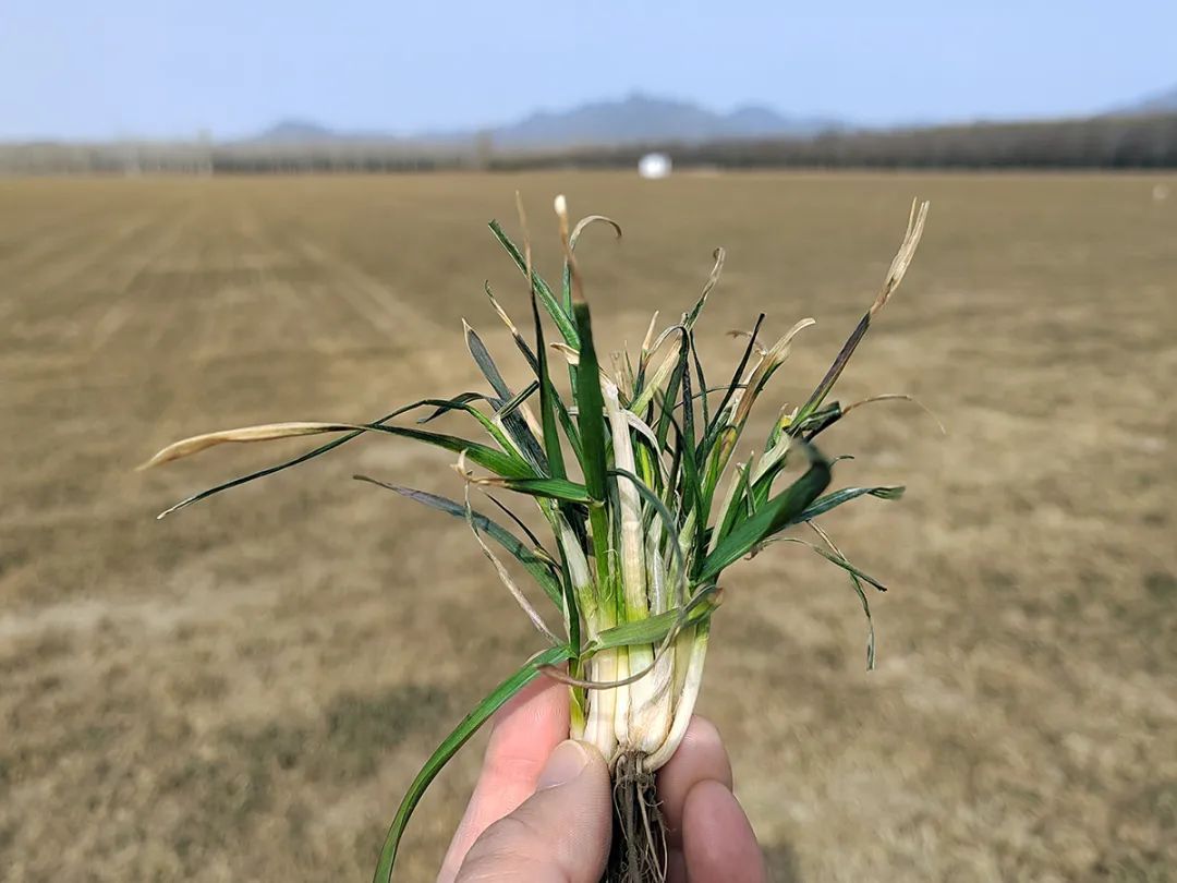 随着气温上升,田间小麦越发萌动。从前王各庄村麦田取出的小麦样本可以看到,小麦根茎饱满粗壮,新叶刚刚萌出。张爱军告诉记者,判断小麦是否开始返青需满足两个条件:新叶需生长至1至2厘米,每一地块过半麦苗都已达到此标准。