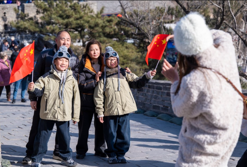 一位来自浙江温州的游客感慨地说:“这是我们第一次来长城,带孩子看看祖国的大好河山。祝福我们伟大的祖国繁荣昌盛、国泰民安!”还有从市区来的游客表示:“二十多年前,我和爱人来过一次长城,今天再来,感觉景区发生了翻天覆地的变化,内容更加丰富了,特别有意思。”