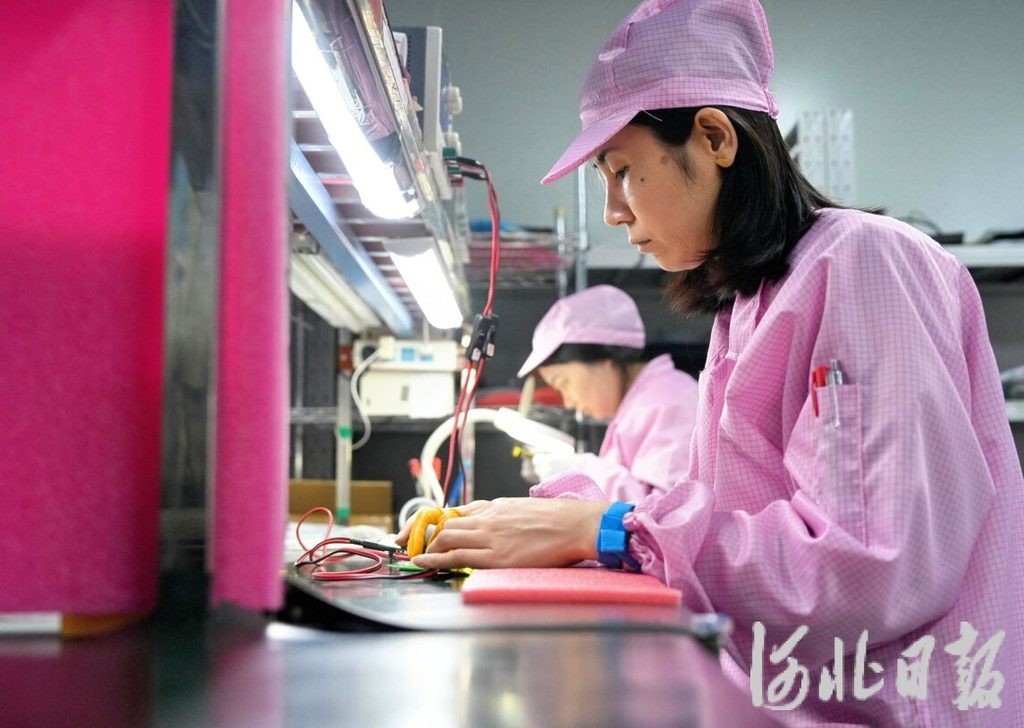 (1月21日,位于京津冀智能网联新能源汽车科技生态港廊坊园区的华田信科(廊坊)电子科技有限公司,员工在检测原材料。)