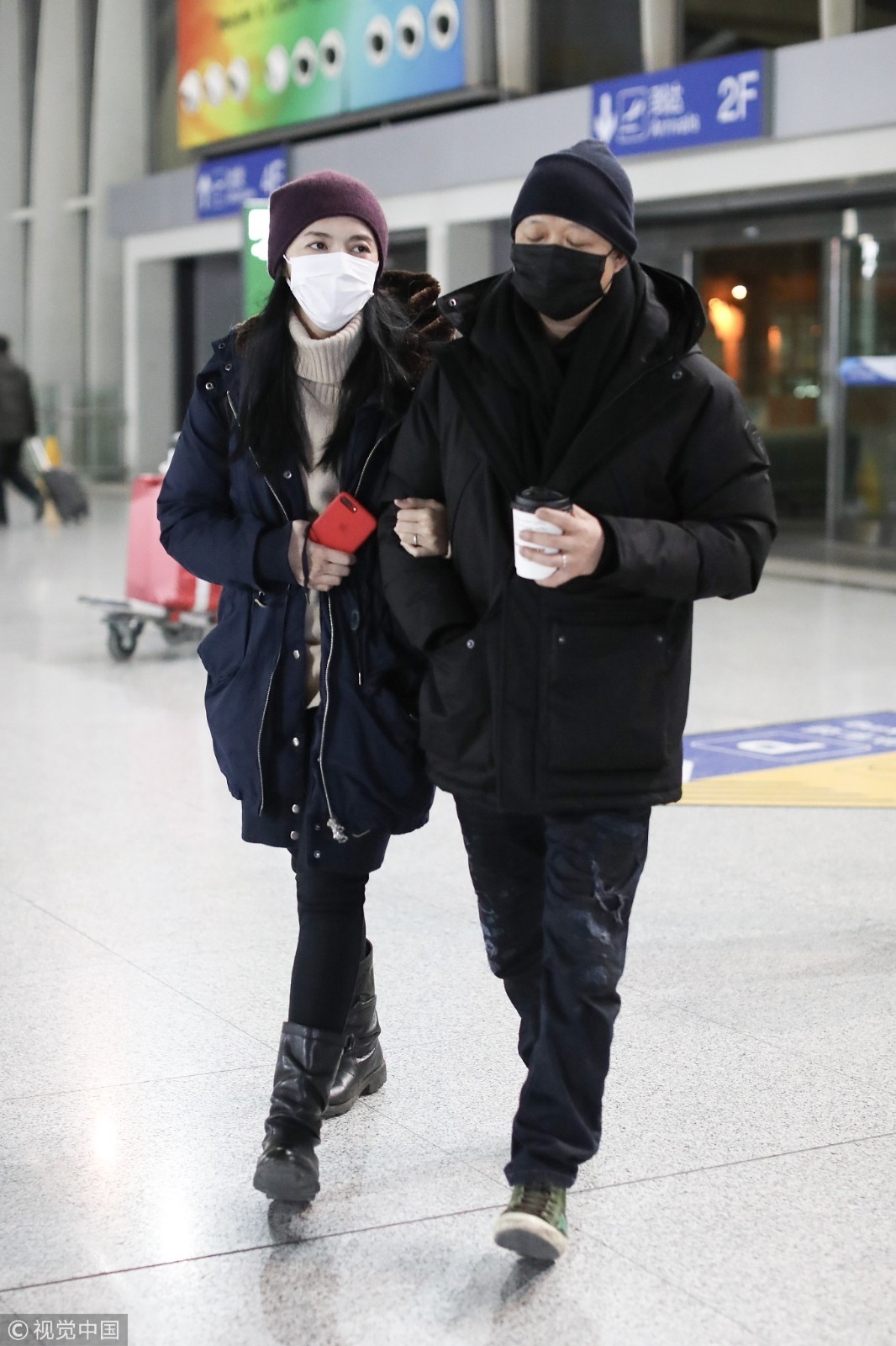 3月4日,姚晨与老公曹郁现身北京机场,二人身穿黑衣戴针织帽,情侣look十分默契,亲密挽手前行。