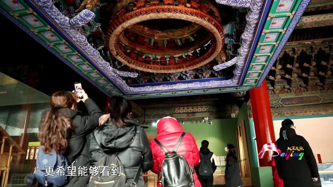 被誉为“稀世国宝”的“北京隆福寺藻井”珍藏于气势恢弘的太岁殿内, 是国家一级文物。据工作人员介绍,藻井是我国传统建筑中顶棚上的一种装饰处理,是小木作装修技术施展的高峰。隆福寺藻井上下共分六层,每层圆形主框架上均细雕云纹图案。最下面两层悬吊于佛像所占用的那间天花板之下,而在一、二、三、五层上布置有琼楼玉宇的天上宫阙,天宫下为彩绘的二十八星宿神像(即第四层与第二层壁板、天花),宫阙里有仙人天女,都是精雕细琢而成,表情神态极为细腻,有和善安详的,有怒目圆瞪的,有颔首微笑的,有闭目养神的,惟妙惟肖。