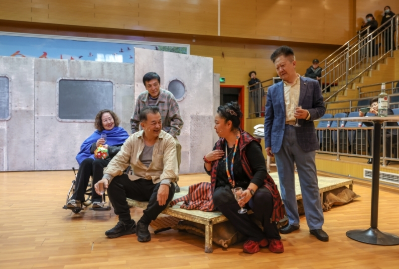 12月14日,由北京宏福集团戏剧之城引进的“大戏看北京”文艺创作孵化平台·青年人才项目——话剧《乘风破浪》亮相北京金手杖国际康养社区。