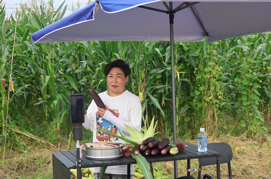 如今,村民们也紧跟时代潮流,开启了网络直播的新销售途径。在直播间里,消费者可以直观感受“花青素”玉米的生长、采摘、蒸煮过程,了解到“花青素”玉米好在哪里,让大家买得放心、吃得安心。