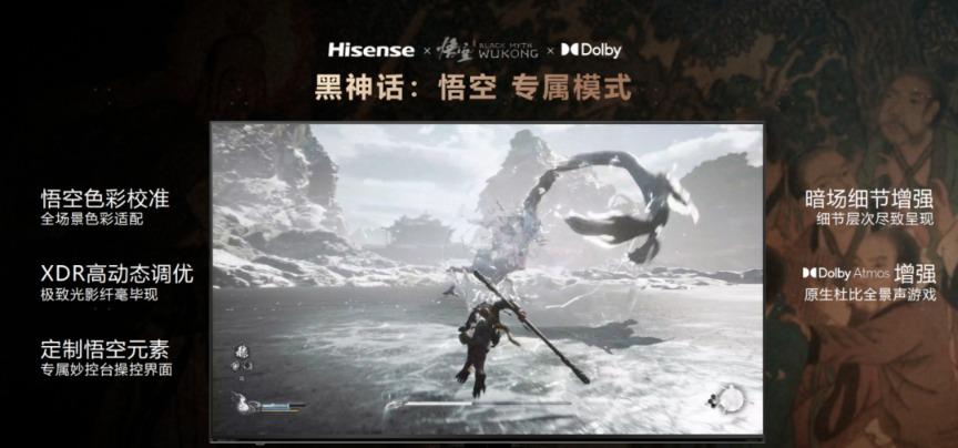 在“AI美好生活”2024海信电视E8系列新品发布会上,海信电视宣布成为《黑神话:悟空》全球官方合作伙伴。推出官方定制电视——旗舰新品海信电视E8N系列,以及官方合作显示器——海信显示器27G7K Pro。