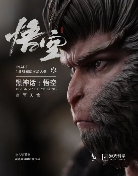 玩具人偶文创公司INART宣布与《黑神话:悟空》合作,参与游戏实体收藏版制作,共同开发“直面天命”1:6可动人偶。