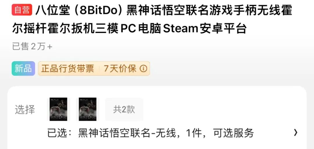 目前《黑神话:悟空》联名手柄在京东的销量突破2万。