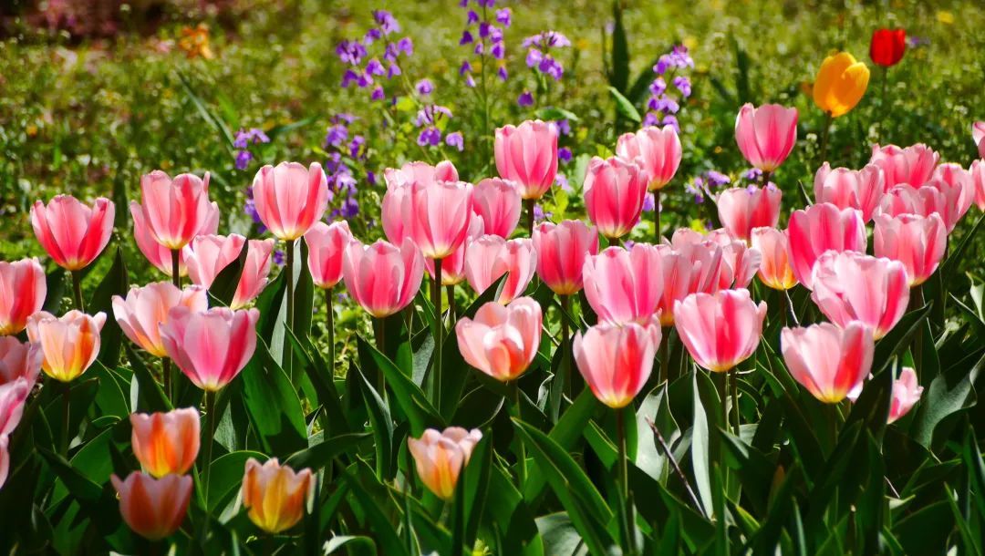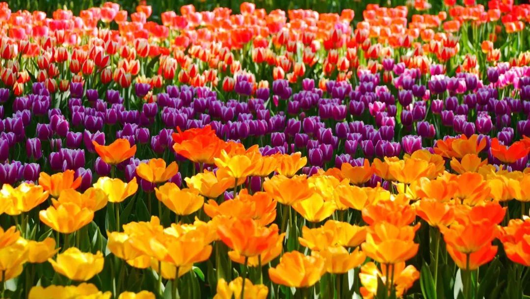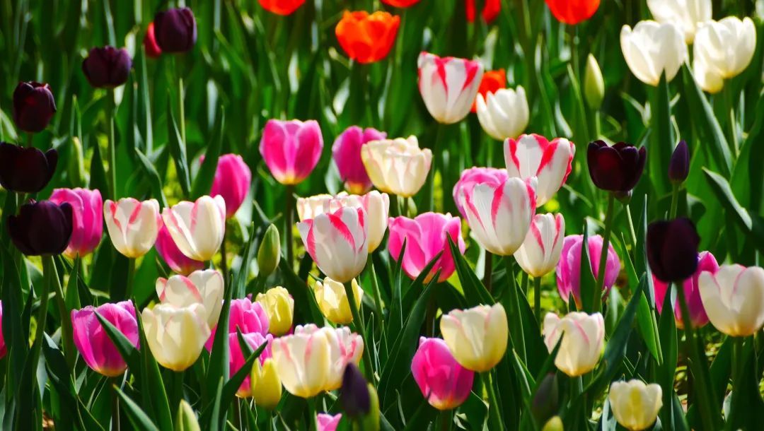 漫步在郁金香花丛中,一阵阵迷人的芬芳扑鼻而来