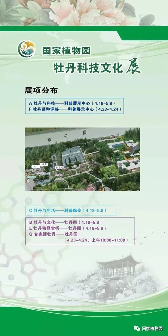 国家植物园牡丹科技文化展在南园开幕。展览内容包含牡丹与科技、牡丹品种评鉴、牡丹与生活、牡丹与文化、牡丹精品赏析及专家话牡丹6部分,集中展示中外牡丹名品200余个品种,带领大家走进“牡丹王国”。