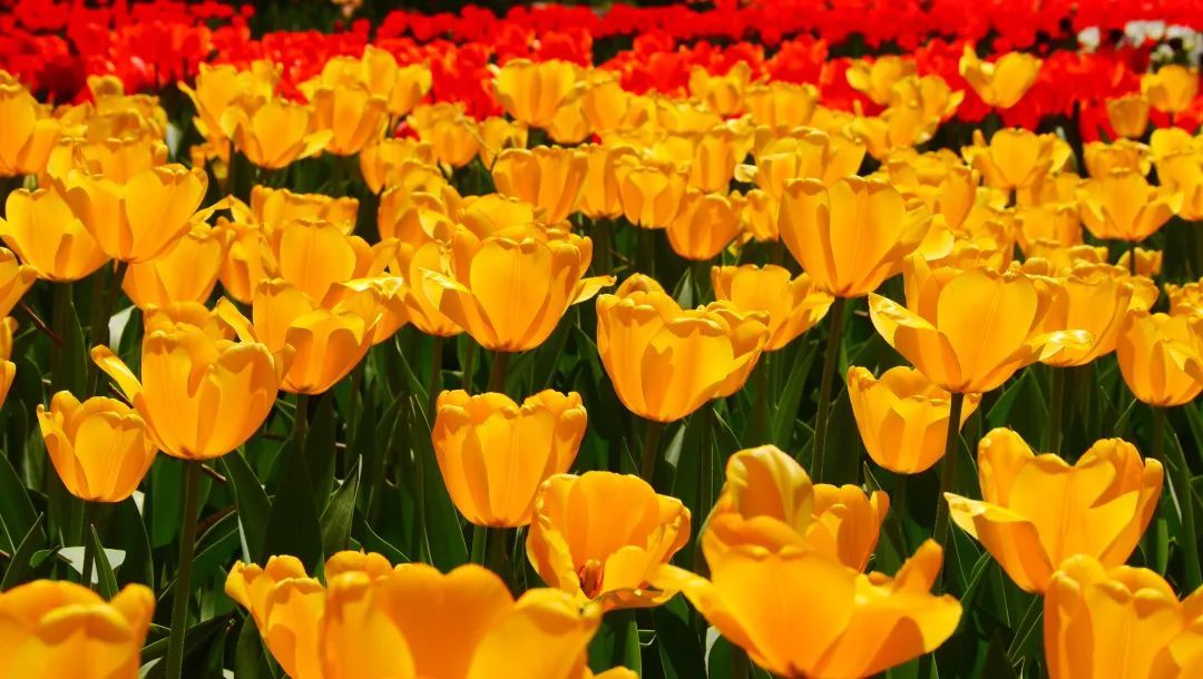 婀娜多姿的郁金香,整整齐齐地站列着