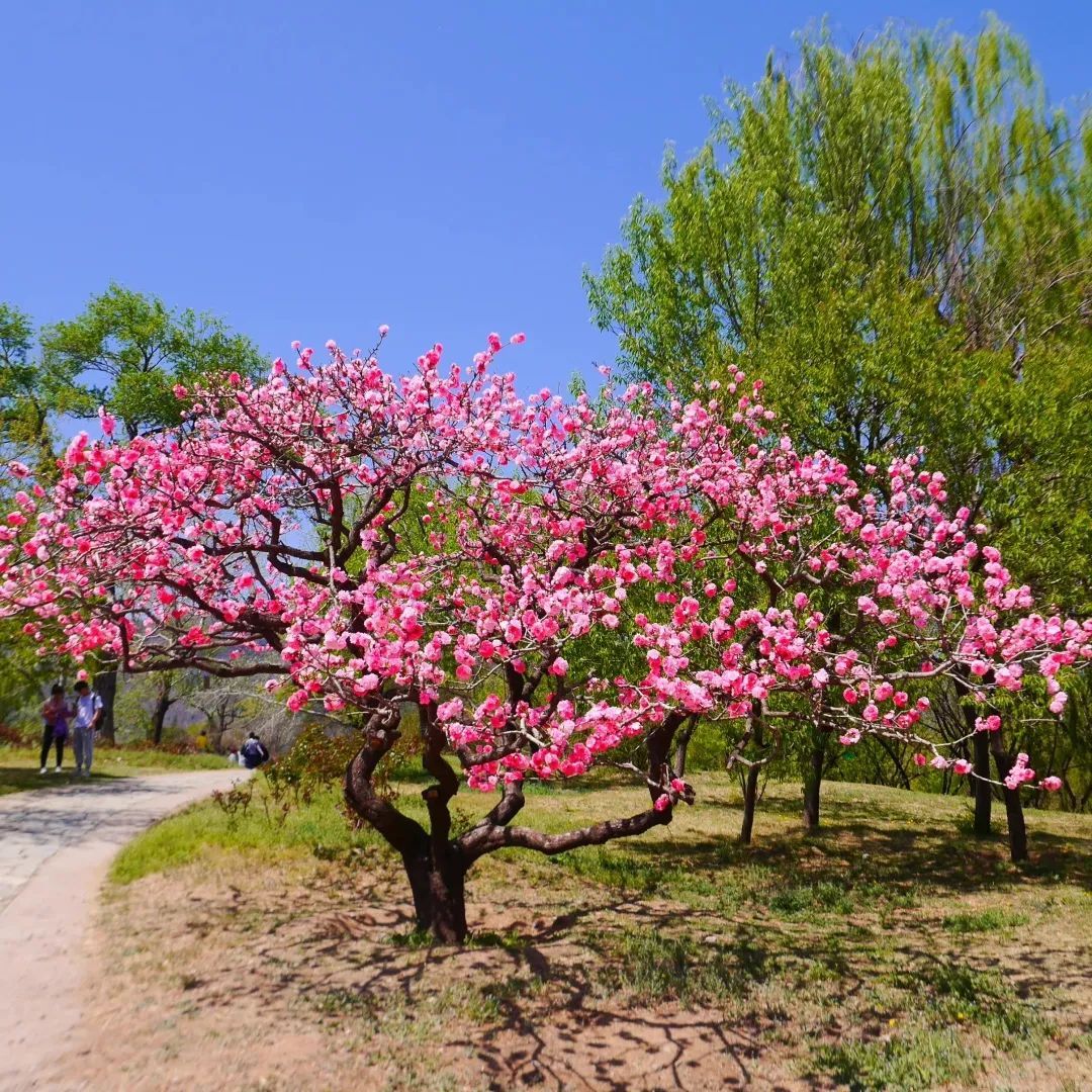 国家植物园内的桃花、丁香、海棠、郁金香等进入最佳观赏期,园内千花百卉争奇斗艳,枝头上已是繁花盛开。