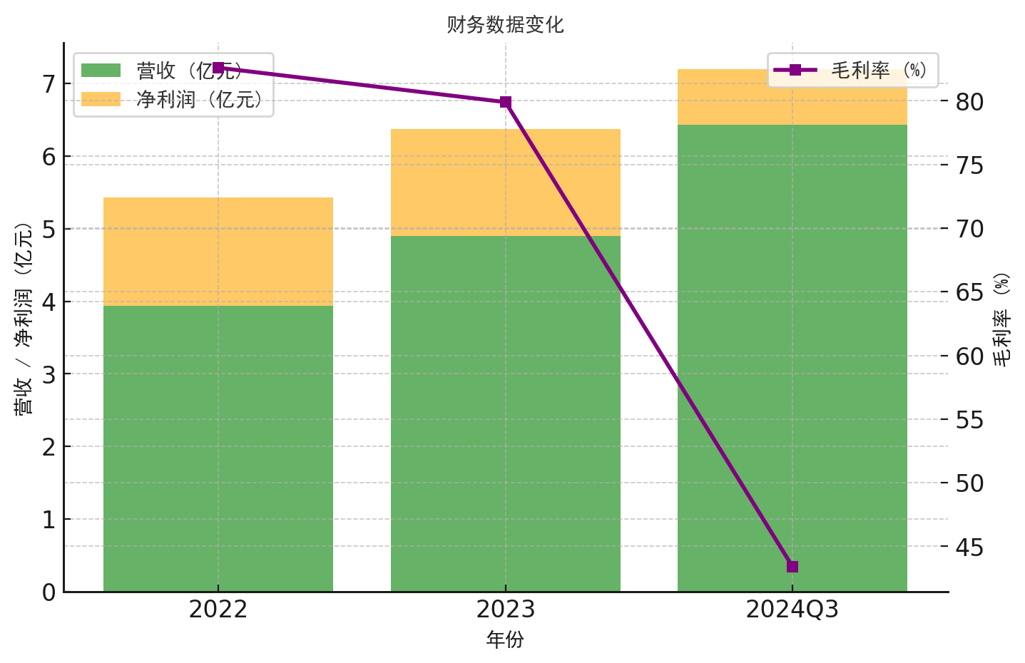 然而2024年前三季度,公司营收虽同比翻番至6.43亿元,上年同期为3.10亿元,但净利润却从1.33亿元大幅滑落至7657.50万元,同比骤降逾40%。