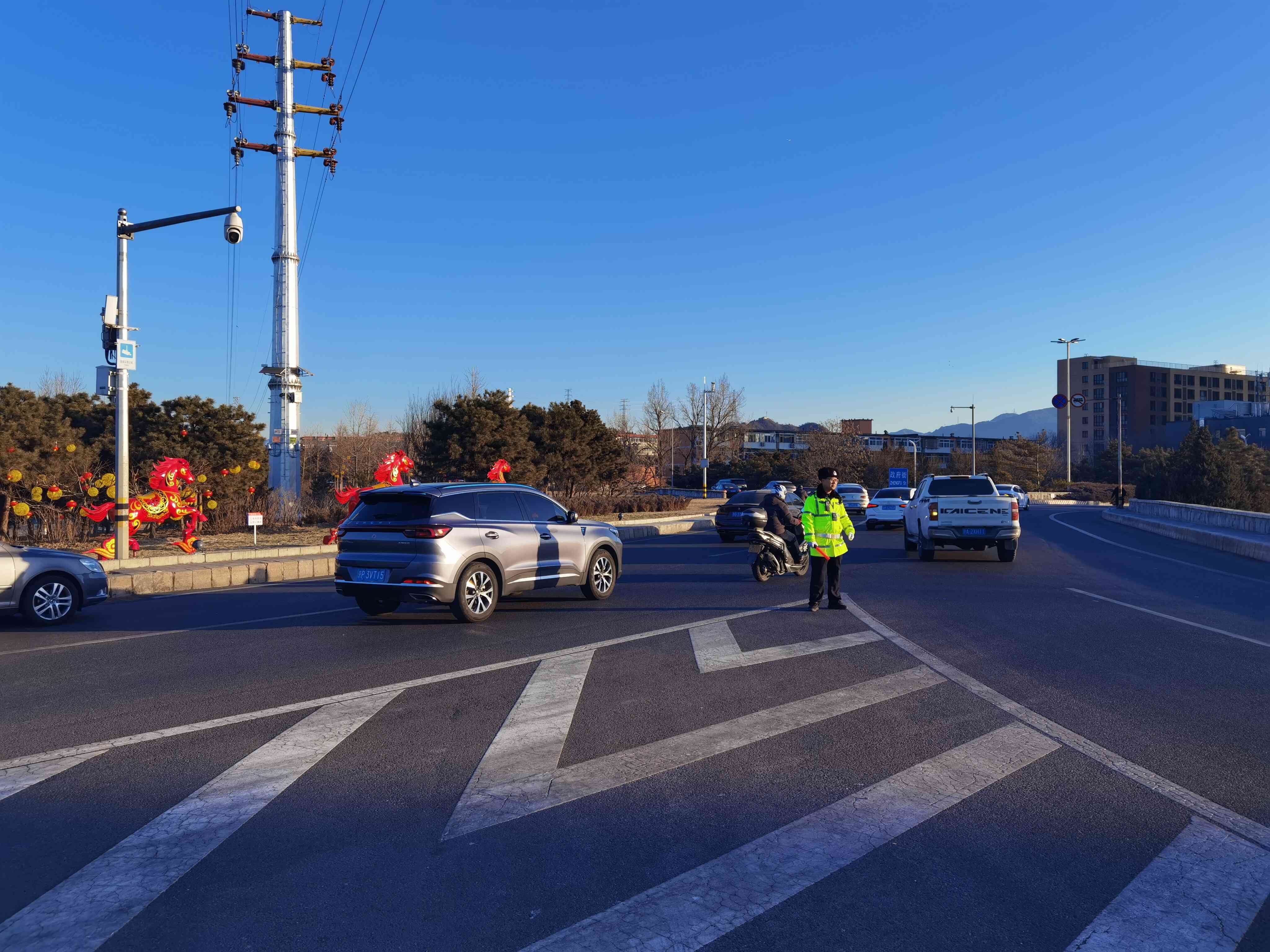 春节期间走亲访友、出行游玩车流集中,道路保畅压力倍增。从早高峰到晚高峰,民警们始终坚守在岗,脚步不停、手势不断。遇到群众问路、车辆小故障,他们主动上前帮忙;发现轻微剐蹭,他们快速处置疏导,最大限度减少道路拥堵。规范的执法、暖心的服务,让春节的道路多了几分秩序与温情。