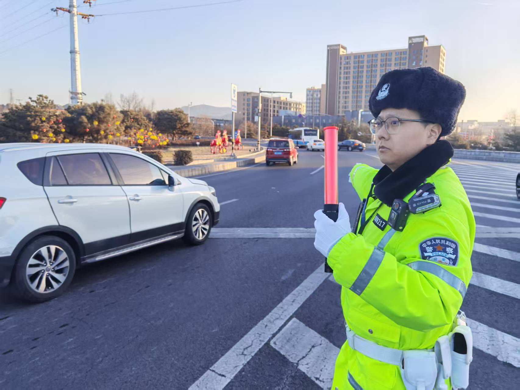 “希望在新的一年里,辖区道路更加畅通有序,市民出行更加平安顺畅。”执勤间隙,丁伟淇告诉记者,“全体民警在过年期间坚守岗位,做到执法有温度、工作有举措、宣传有力度,全力守护群众春节出行安全。”