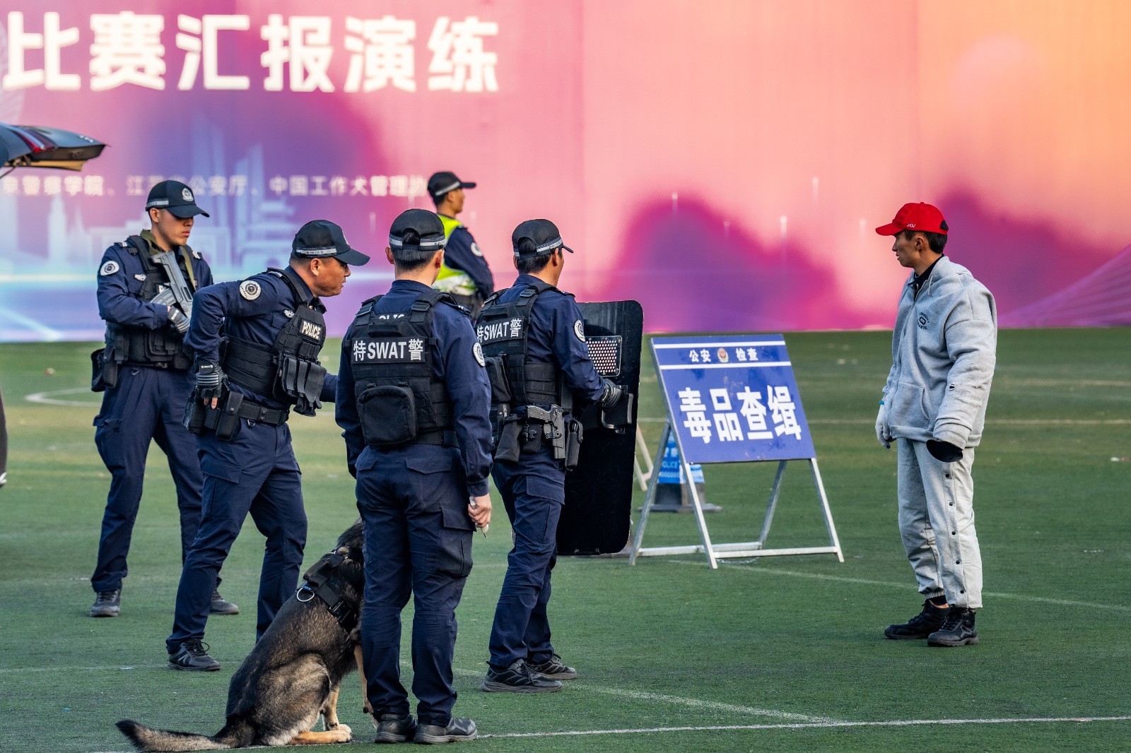 在比赛汇报演练中,公安部昆明警犬基地、南昌警犬基地和北京市公安局、江苏省公安厅、浙江省公安厅、广西壮族自治区公安厅、西藏自治区公安厅以及国家移民管理局8个演练单位,结合实战需求精心编排演练环节,现场演示警犬服从科目、警犬特工队、“人机犬”协同作战以及机器狗等实战应用内容,充分展现了警犬在侦查破案、巡逻防控、缉私搜毒、搜寻救援领域发挥的重要作用。特别是首次展示了适应高热高湿环境的“太仓犬”、适应山地丛林地貌的“广西山地犬”、适应高原缺氧环境的“西藏林芝猎犬”等在研警用本土犬种,反映了公安机关大力开展本土犬种警用性能研发工作取得的实战应用成果。