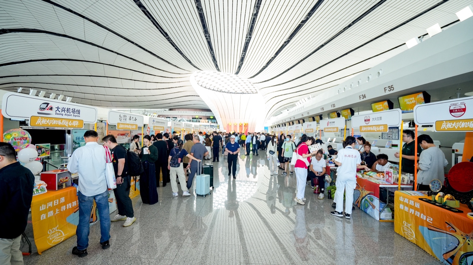 在为期两天的“925主题嘉年华集市”活动中,国内外航空公司、在线旅游平台(OTA)、国内外文旅局、友好机场等70余家单位共同参与,让旅客现场了解航空公司最新航线产品与优惠、各地特色旅游资源,参与趣味互动游戏赢取机票、航旅周边,还可欣赏舞蹈、京剧、乐器演奏等文艺节目,在候机间隙感受热烈氛围。北京大兴国际机场航空业务部业务经理李紫薇介绍:“我们还策划了‘小朋友的第一次飞行'、‘极速达'等六大创新活动,让不同旅客都能参与趣味互动,也体现机场交通便捷,服务暖心,航线通达的核心优势。”