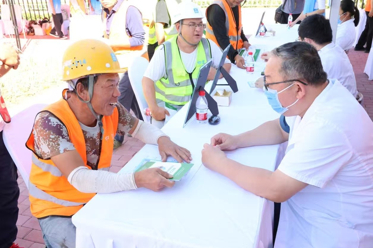 职业病防治专区,发放《建筑工人全面健康科普手册》,来自首都医科大学附属复兴医院的五位专家为工友们提供现场诊疗,将三甲医院的优质医疗资源直接下沉到工地一线,针对建筑行业高发职业病给出个性化干预方案,真正实现了专业医疗服务“零距离”对接,有效打通健康保障的“最后一公里”。