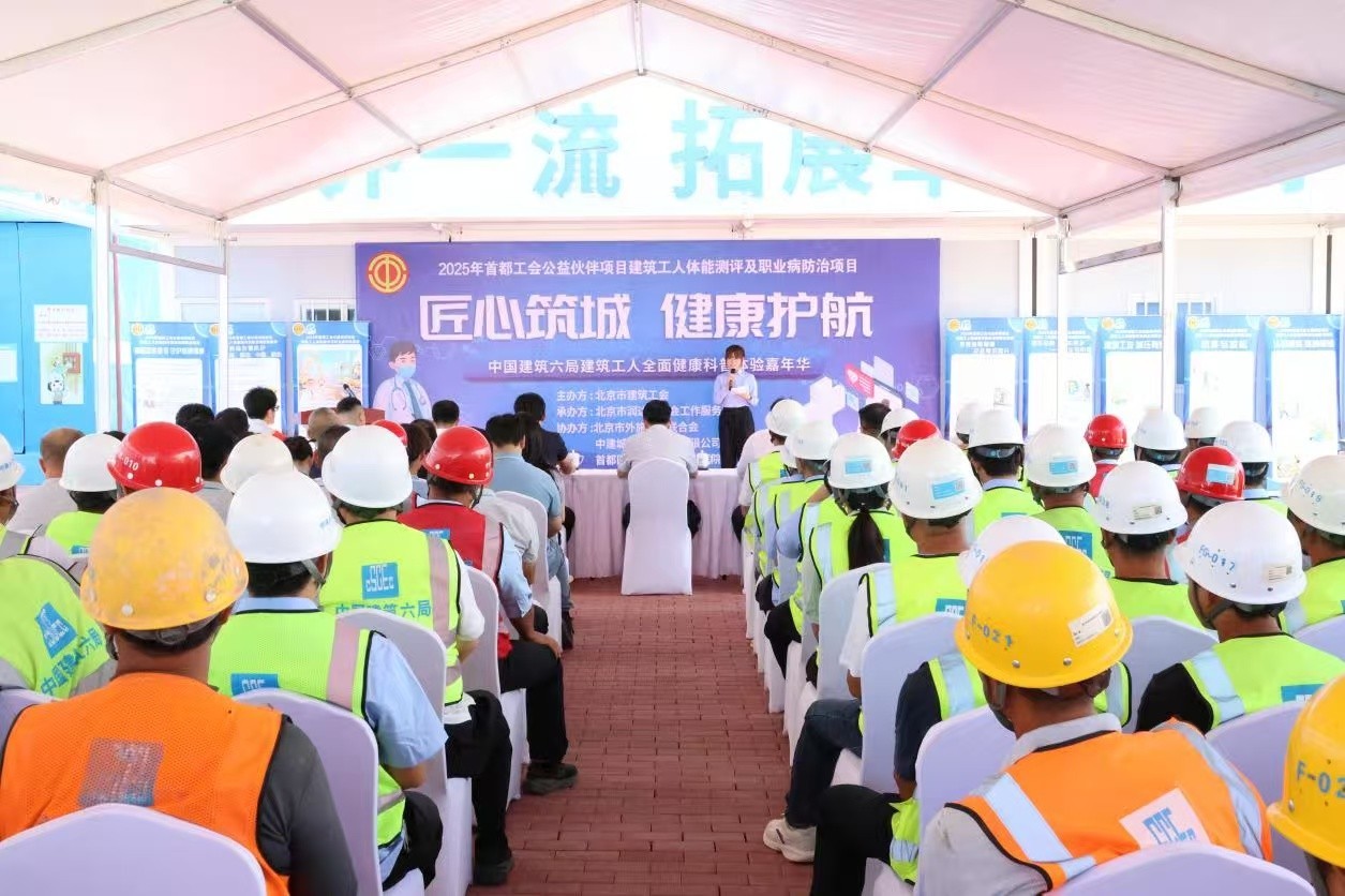 此次活动由北京市总工会指导,北京市建筑工会主办,在中建六局城建公司昌平区妙峰书苑建设工程项目现场启动,围绕建筑工人身体健康、心理健康、运动健康与社会交往需求,通过沉浸式体验,为中建六局城建公司的300名一线工友们送上了“感得到、触得及”的一站式健康关怀。