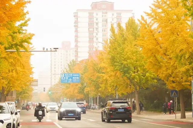 实兴大街的银杏树叶色彩缤纷