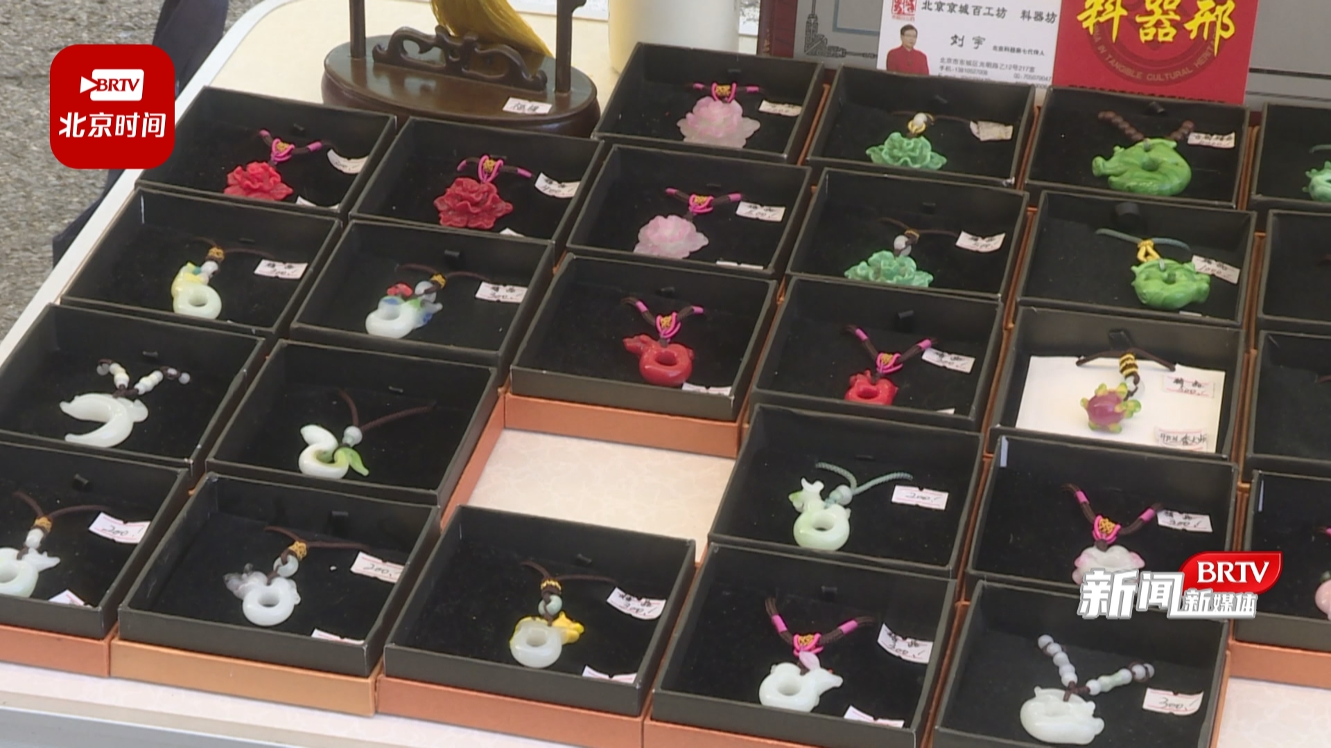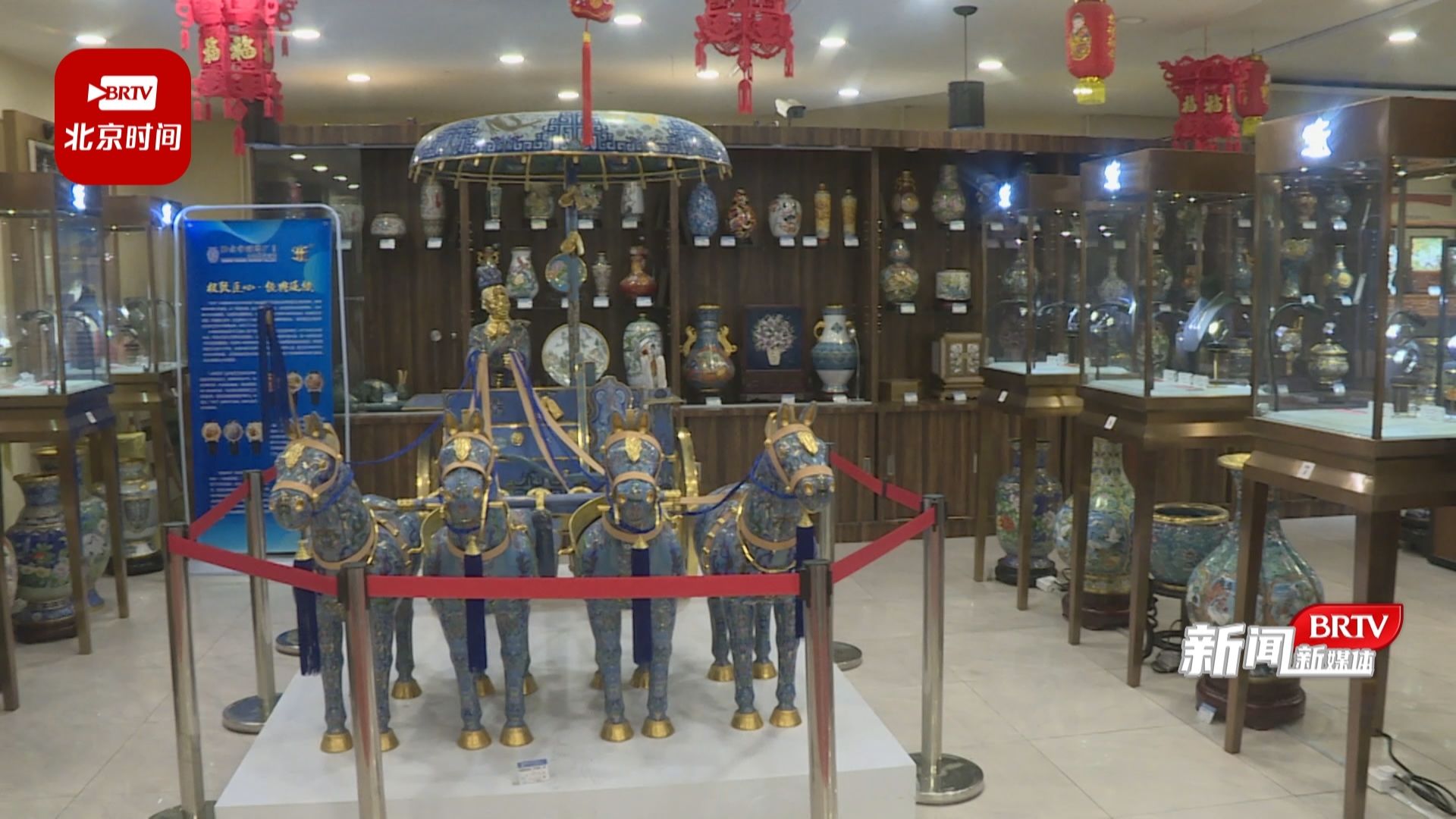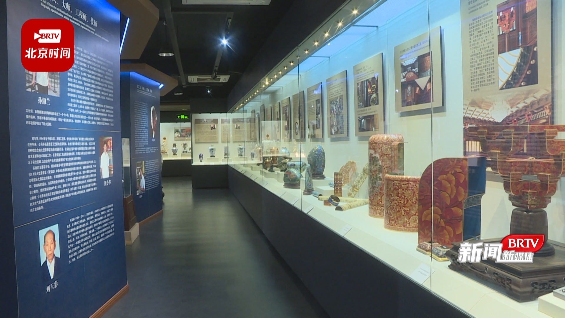 在北京市景泰蓝艺术博物馆门口,京珐景泰蓝、北京市前进鞋厂、北京制帽厂、北京剧装厂、红星二锅头、百花蜂蜜、料器、石画等十余家中华老字号和民间工艺呈现非遗技艺的匠心与传承。