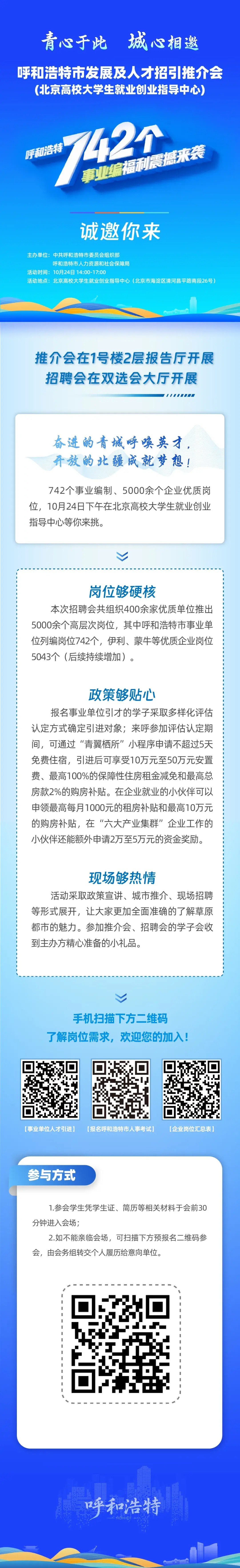 742个事业编5000余就业岗位 10月24日呼和浩特人才招引推介会就等你来_北京时间