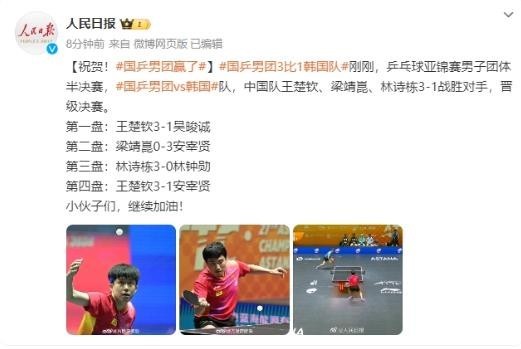 赢啦!国乒男团击败韩国进决赛,王楚钦拿下决胜局_北京时间