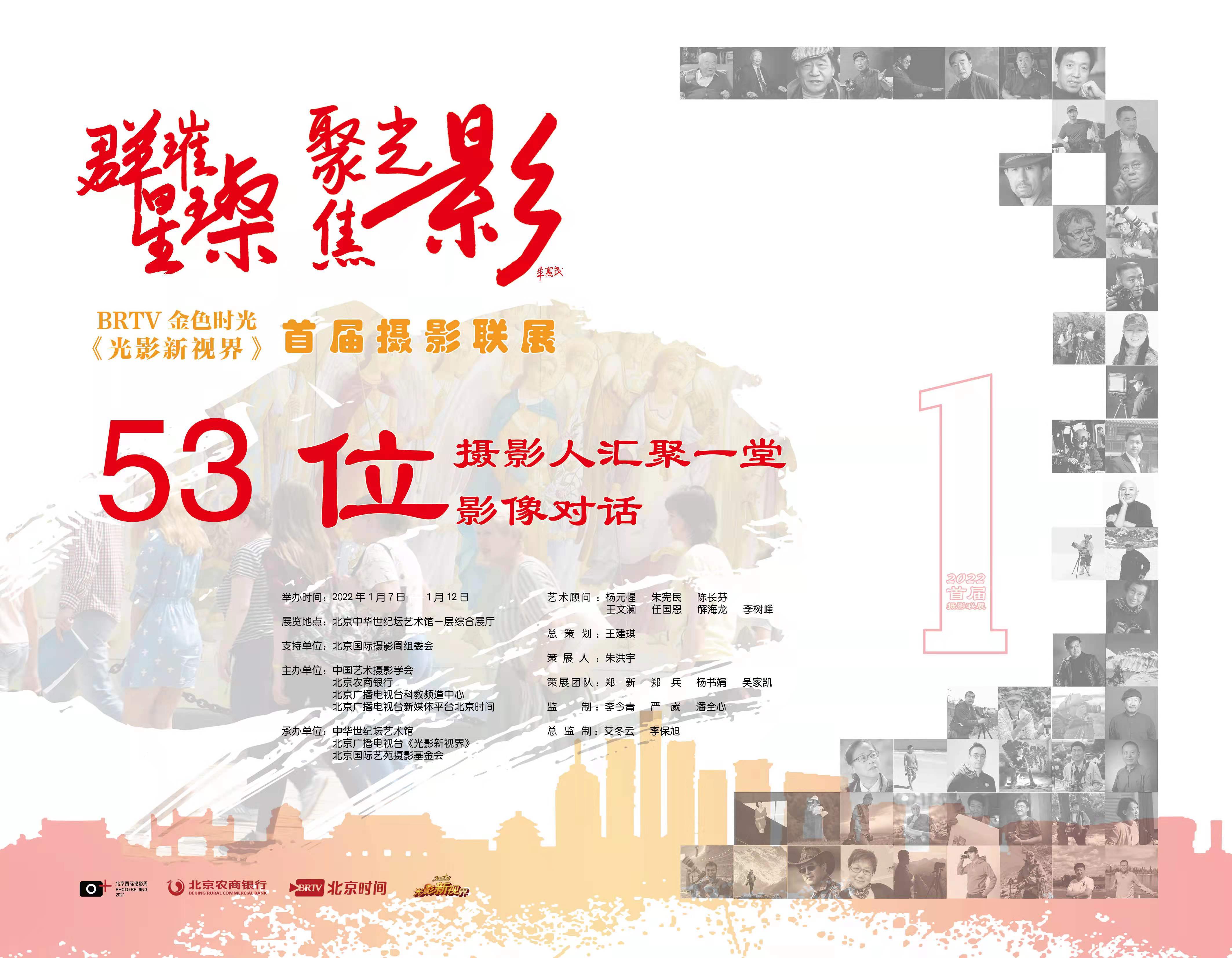 2022年新年伊始,一个与众不同、别开生面的摄影联展,将在北京中华世纪坛一层综合展厅开展。由北京国际摄影周组委会支持、中国艺术摄影学会、北京农商银行、北京广播电视台科教频道中心、北京广播电视台新媒体平台北京时间,共同举办的《群星璀璨聚焦光影 BRTV金色时光-光影新视界首届摄影联展》,将于2022年1月7日下午举行开幕式。这也是国内首个由电视台一个节目策划组织的摄影展览。