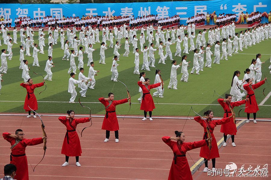 天之水网讯:2017年9月12日上午,中国天水秦州第三届李广杯国际传统射箭锦标赛在天水师范学院激情开弓,来巴西希腊伊朗马来西亚蒙古国俄罗斯韩国泰国北京河北内蒙古甘肃天水等国内外54支队伍340名运动员将角逐最终强者中共天水市委书记王锐...