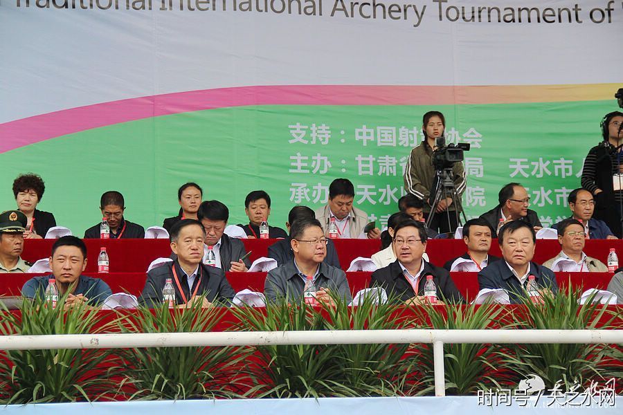 中国射箭协会原常务副主席,传统弓分会荣誉主席徐开才先生、李淑兰女士,青海省水利厅厅长、中国射箭协会传统弓分会荣誉主席陈兴龙,北京民族体育协会骑射分会会长史界平,中国射箭协会传统弓分会常务副秘书长王志广,甘肃省体育局副局长钱万杰,天水市人大常委会主任王光庆,中共天水市委常委、宣传部长蒲军,中共天水市委常委、秦州区委书记雷鸣,天水师范学院党委书记马建东,天水市人大常委会副主任刘天波,天水市政府副市长张建杰,天水市政协副主席苏定武,天水师范学院院长蔡文浩,天水师范学院党委副书记师平安,天水市政府秘书长王祥林等出席开幕式。