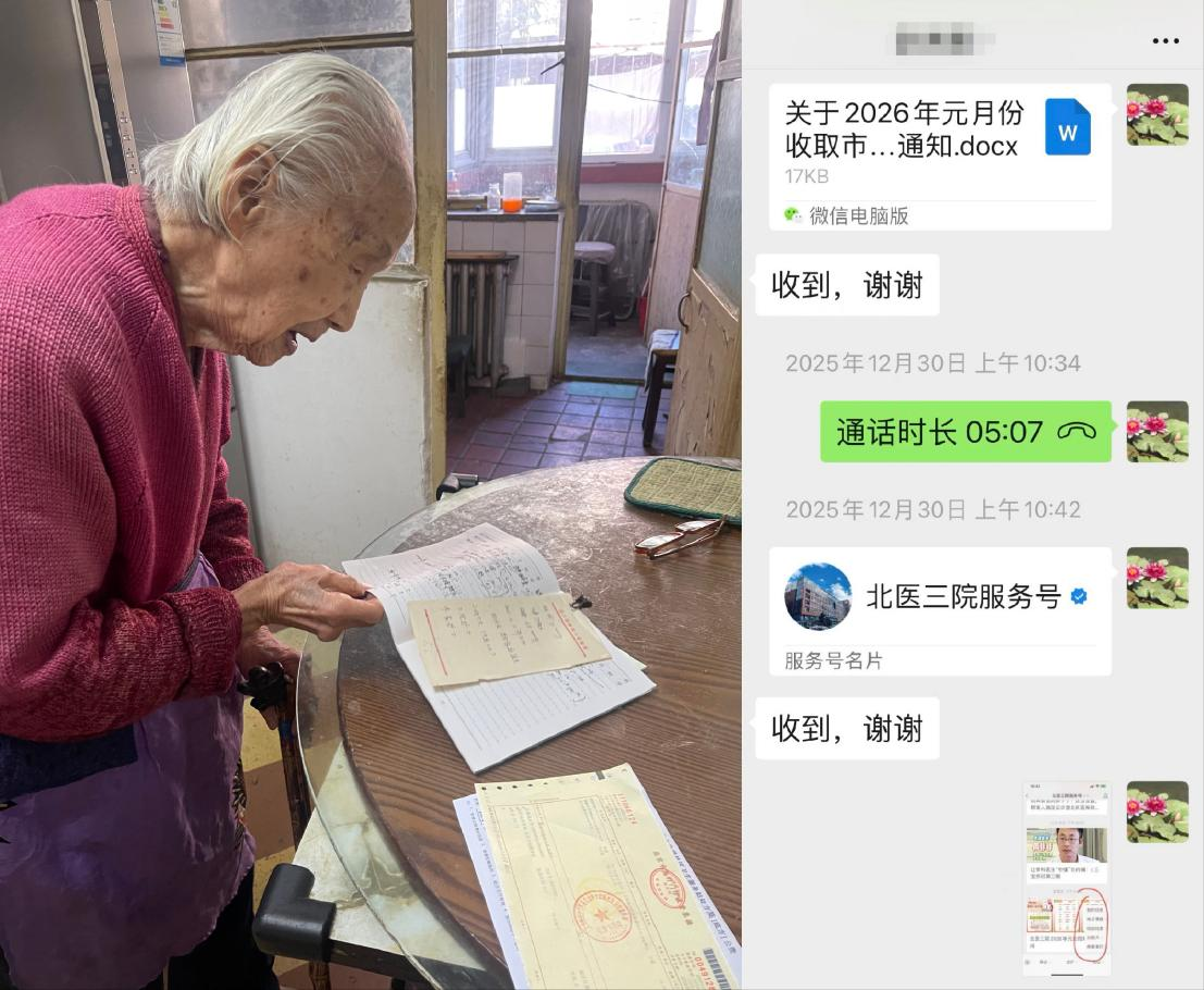 (记者 崔倩)1月6日,由中国石油大学(北京)离退休工作处与校医院组成的服务小队工作人员在寒冬中完成百余份票据的交接与整理,为年度报销工作画上句号,也送上一份安心。这场持续七年的便民服务,已累计上门 50 余次,收取单据超 5000 份,从最初的便民举措升级为守护离退休老同志的 "暖心之约"。