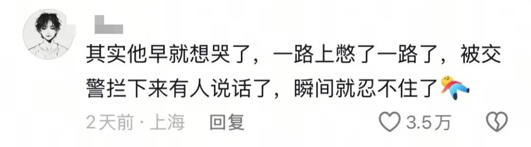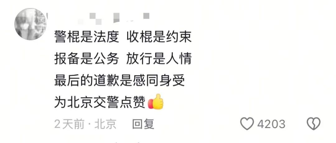 这段经历被宋先生摩托车上的行车记录仪完整记录下来。事后,他将视频发布到短视频平台,迅速引发众多媒体和网友关注。网友评论说:“其实他早就想哭了,一路上憋了一路了,被交警拦下来有人说话了,瞬间就忍不住了”“警棍是法度,收棍是约束,报备是公务,放行是人情,最后的道歉是感同身受,为北京交警点赞!”。