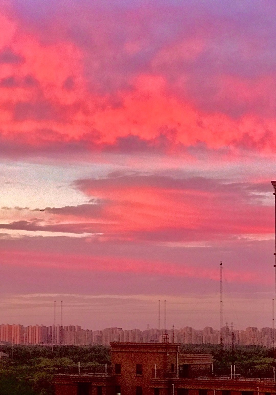 颜值爆表的清晨,霞光万丈为我们点亮了美好的一天,出行的朋友注意高温天气!